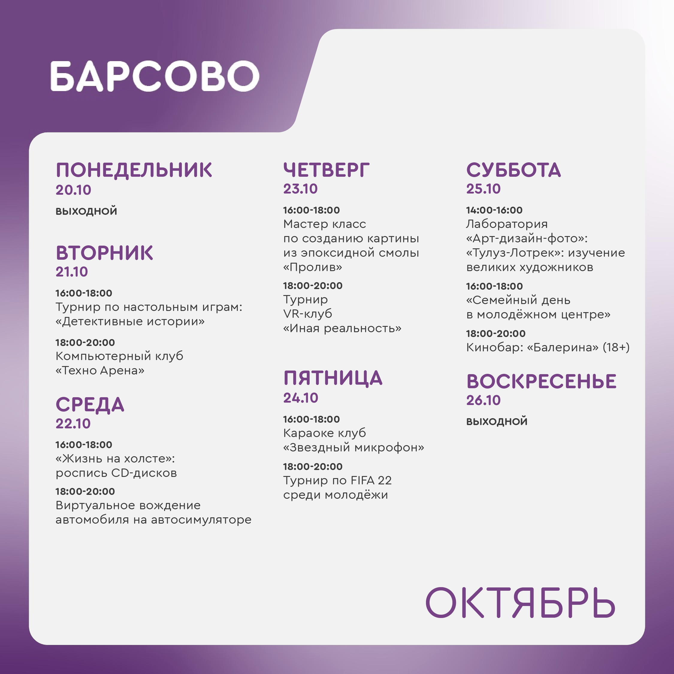 Время работы молодёжного центра: