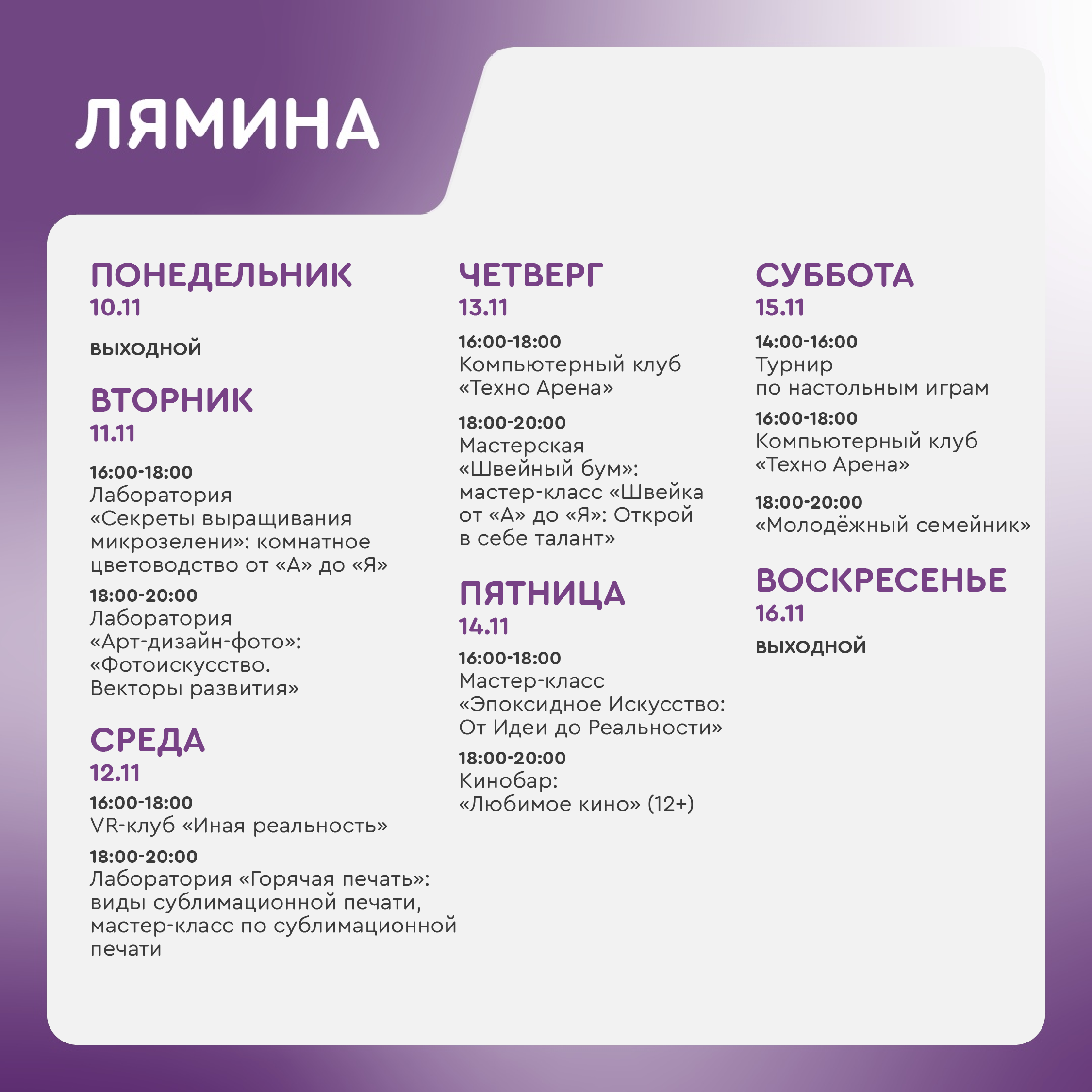 Время работы молодёжного центра: