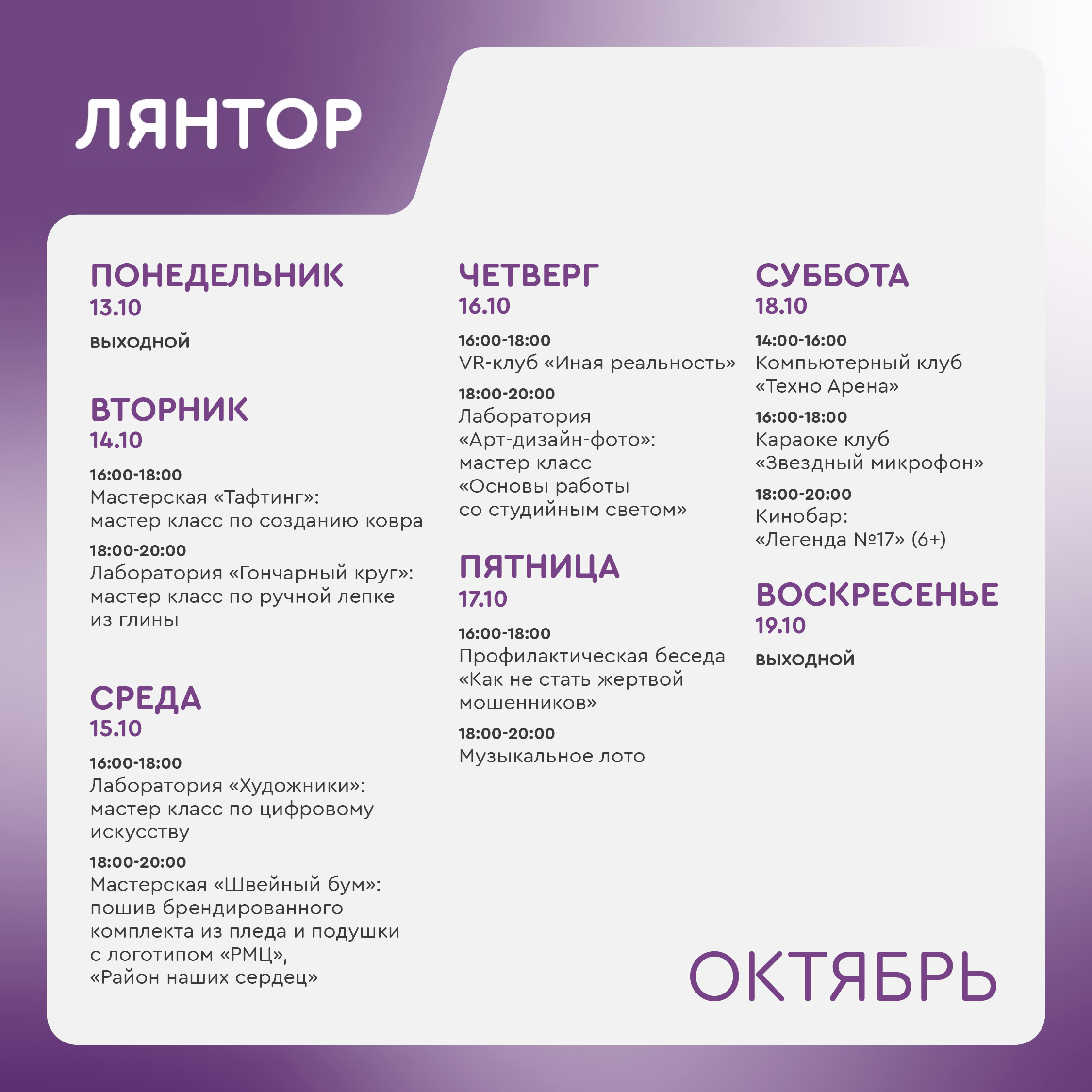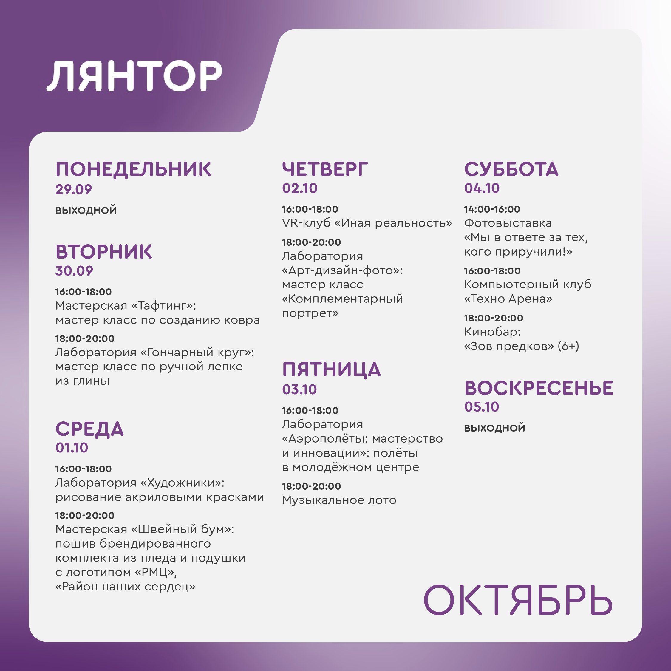Время работы молодёжного центра: