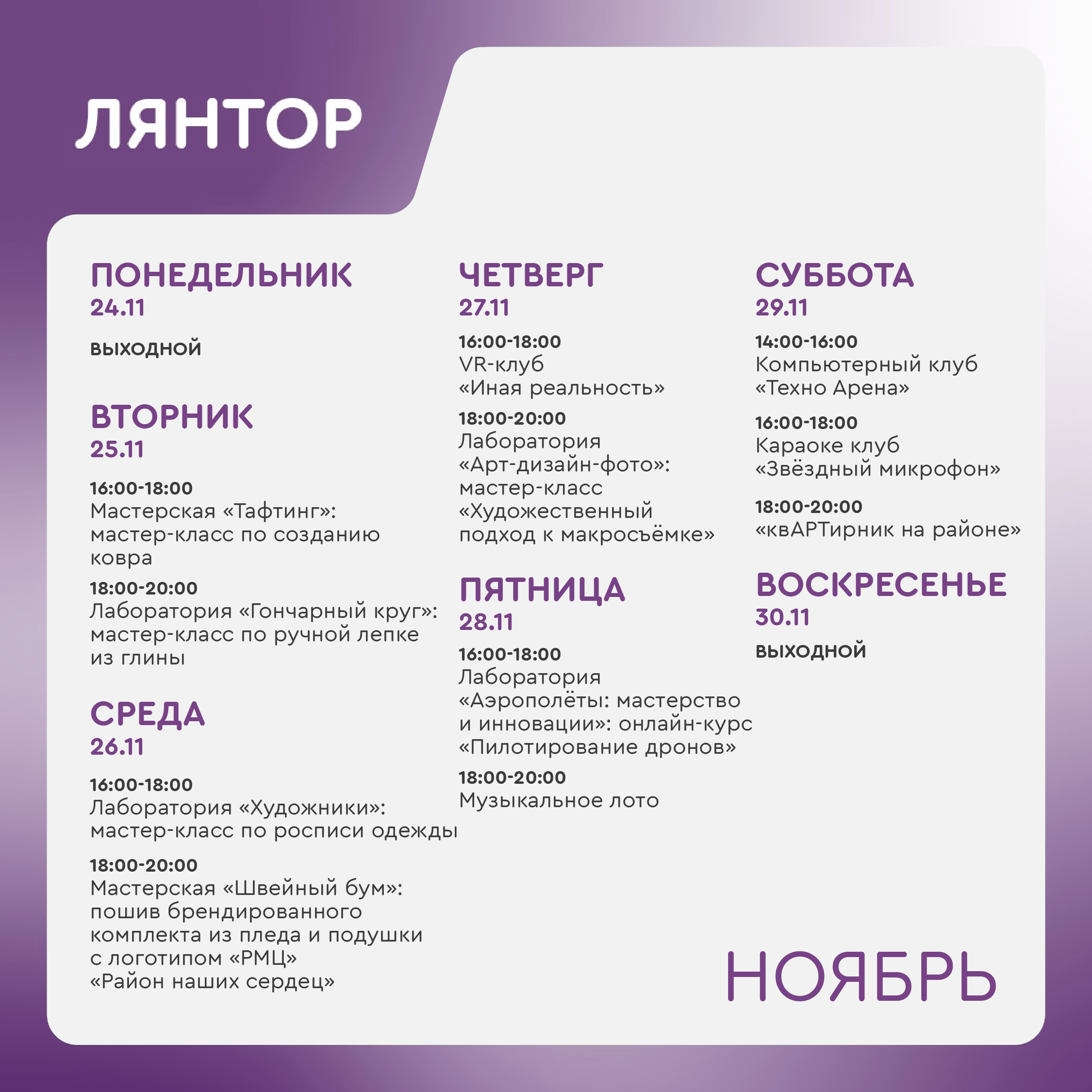 +7 912 997-80-20 - Демина Марина Владимировна, руководитель молодёжного центра Лямина (ул. Центральная, 11).