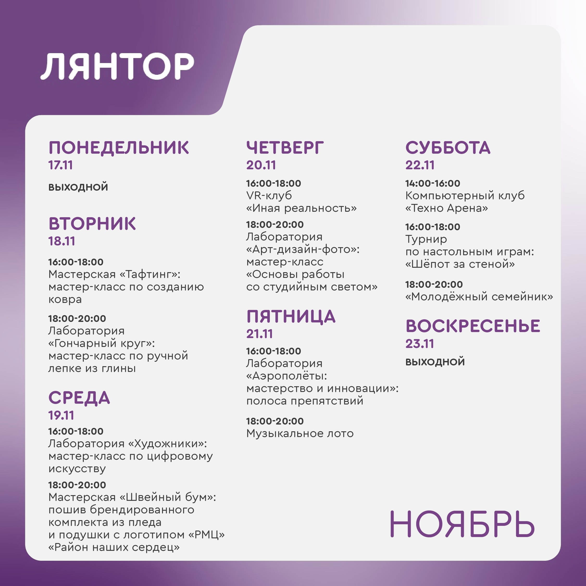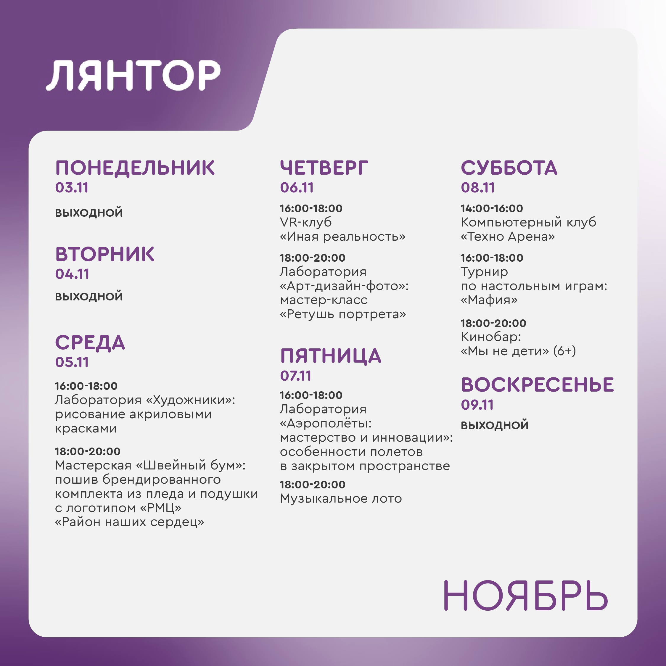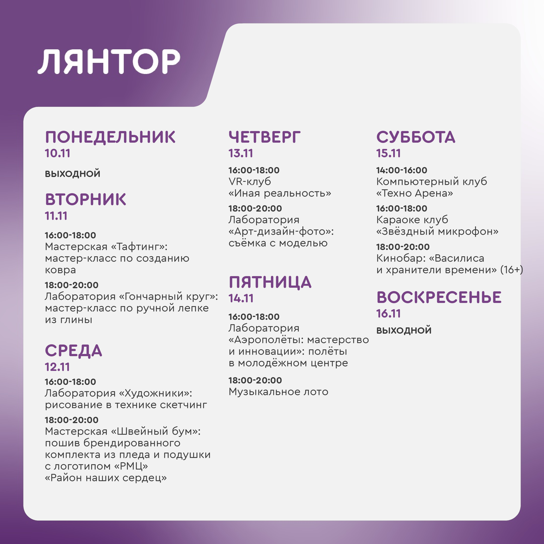 Время работы молодёжного центра: