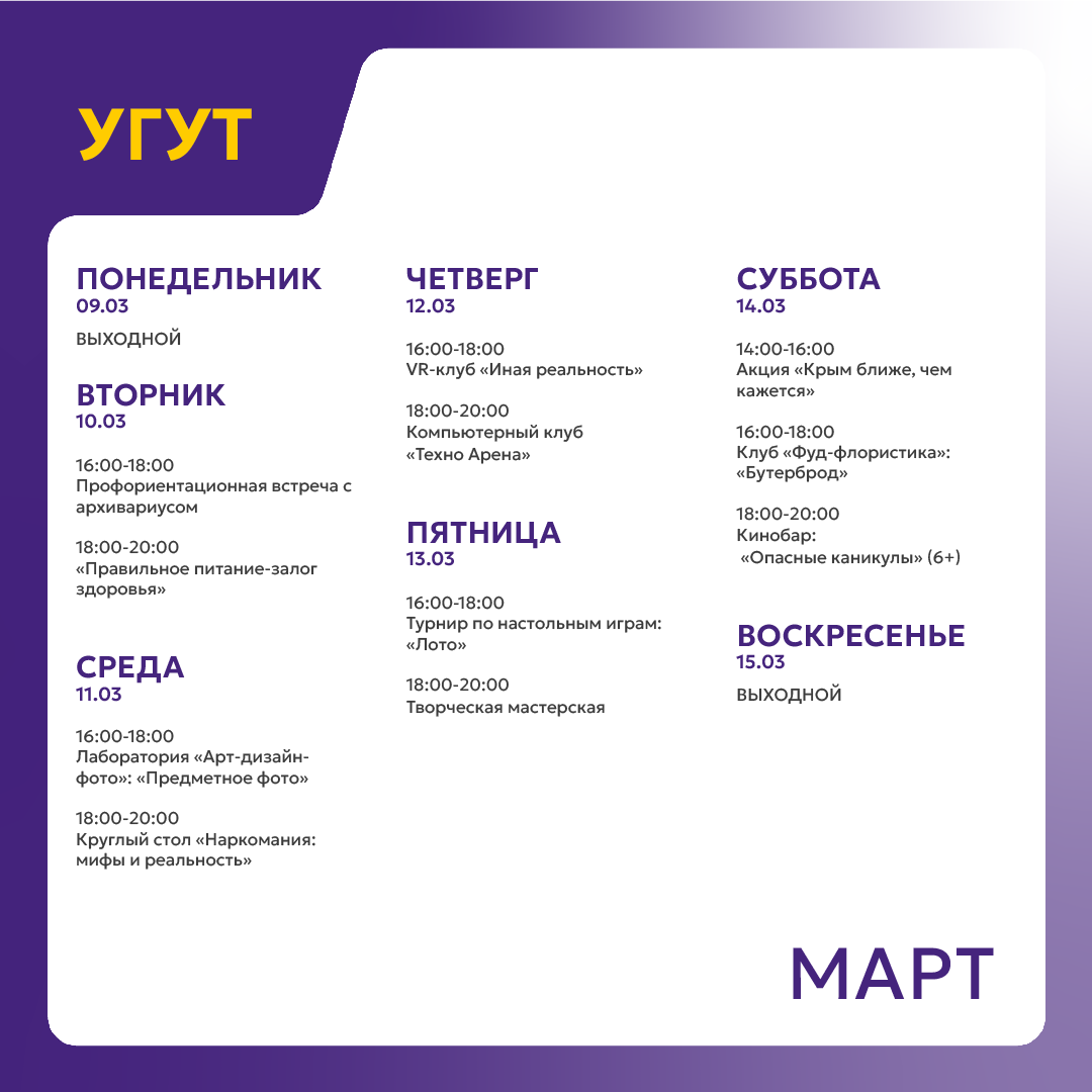 Вторник, четверг, пятница - с 12.00 до 20.00