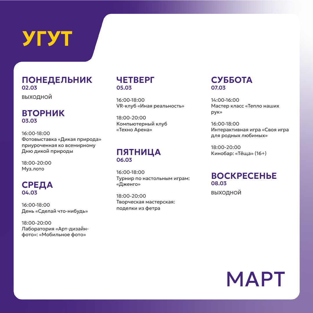 +7 912 411-08-68 - Сыроваткина Светлана Анатольевна, руководитель молодёжного центра в Угуте (ул. Сосновая, 13).