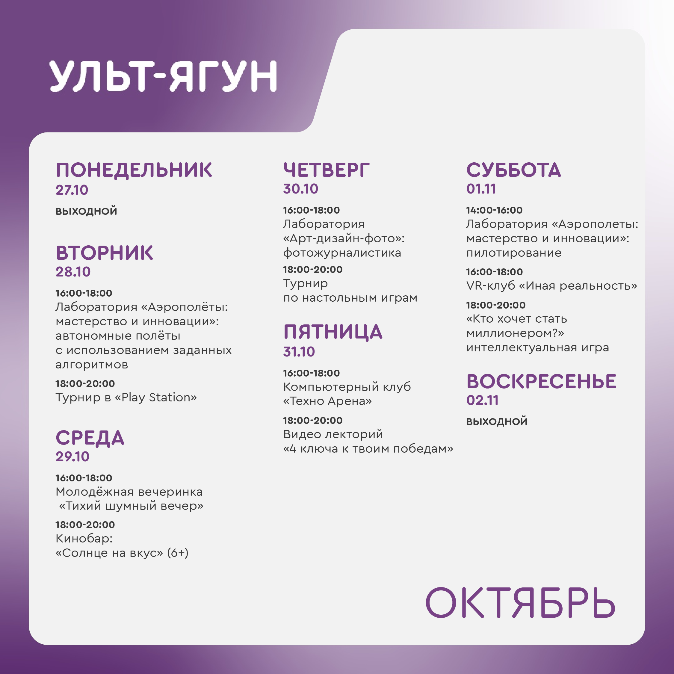 Время работы молодёжного центра: