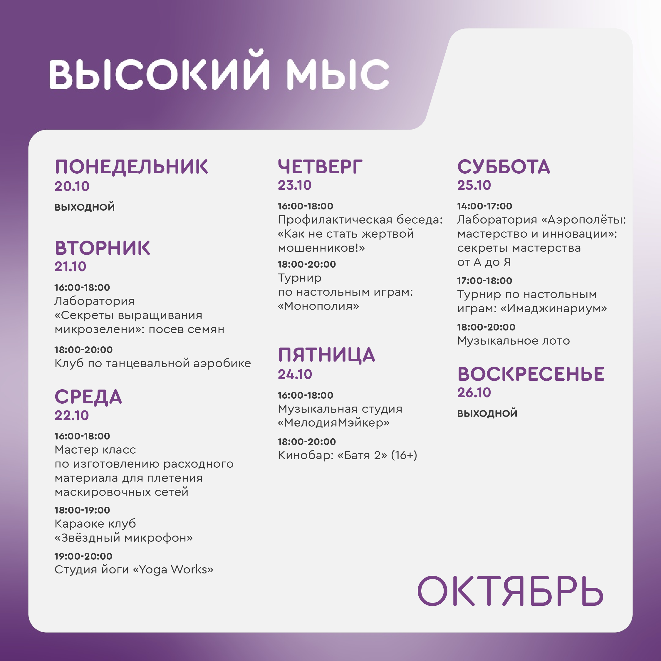 +7 904 880-99-17 - Стафеева Наталья Валерьевна, руководитель молодёжного центра в Высоком Мысу (ул. Советская, 37).