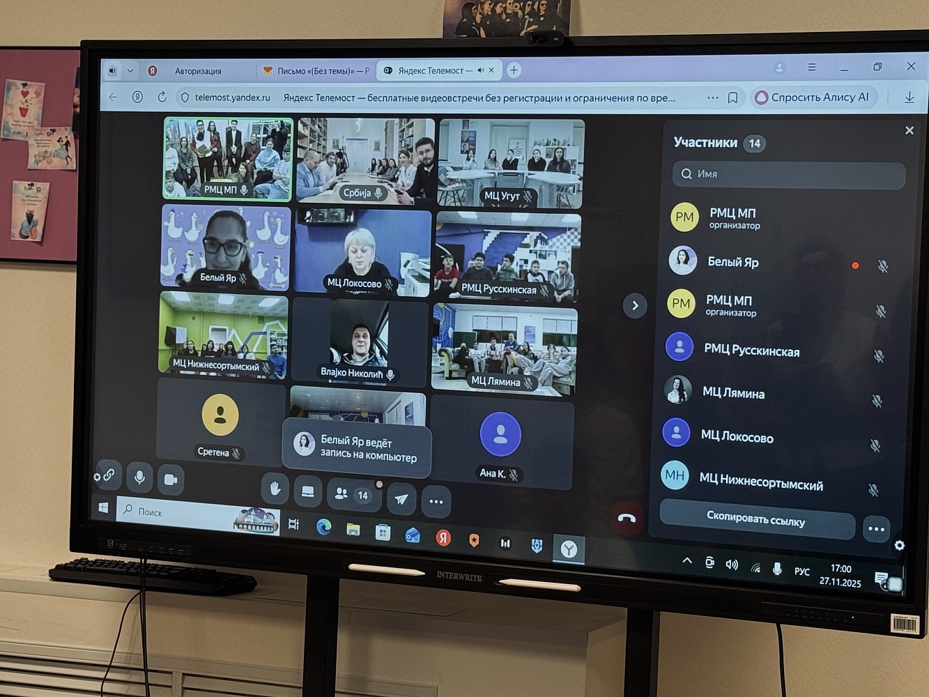С приветственным словом к участникам обратилась директор муниципального автономного учреждения «Районный молодёжный центр», культуролог, философ, историк кино и лектор Российского общества «Знание» Светлана Ескина: «Телемост между молодёжью нашего муниципалитета и Сербией проходит впервые, за 25-летнюю историю молодёжной политики Сургутского района. Надеюсь, этот шаг станет началом долговременного, полезного и интересного сотрудничества, которое поспособствует развитию межкультурных связей, обмену знаниями и опытом между странами. Открытый диалог поможет укрепить дружеские отношения, расширить кругозор молодым людям, познакомить с национальным достоянием и совместно найти решения современным вызовам».